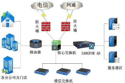 国美电器 随着互联网电子商务的迅速发展,目前电子购物以其便利性已越来越受广大消费者的喜爱。作为中国最大家电零售连锁企业的国美电器也顺应客户需求,迅速建立了自己的网上商城电子购物平台。业务的飞涨给国美电器的服务器构成了很大的压力,为了提高工作效率,国美电器启动办公自动化系统建设,并且要能保障这个办公自动化系统能承载国美 10 多万员工的大并发应用。最终深信服 ad 应用负载解决方案获得国美 it部门的一致认可。 部署方案